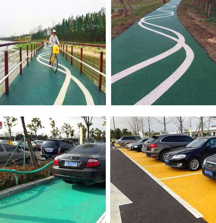 2、城市公園步道、綠道等:在城市公園步道、綠道工程中,增加彩色瀝青路面,可以調(diào)節(jié)環(huán)境溫度,緩解城市熱島效應(yīng)。其次,彩色瀝青的色彩主要來自石料自身顏色,所含輕質(zhì)餾分極少,對環(huán)境和人體的影響極小,并且具有良好的彈性、柔性以及防滑功能,特別適合老人和小孩散步。